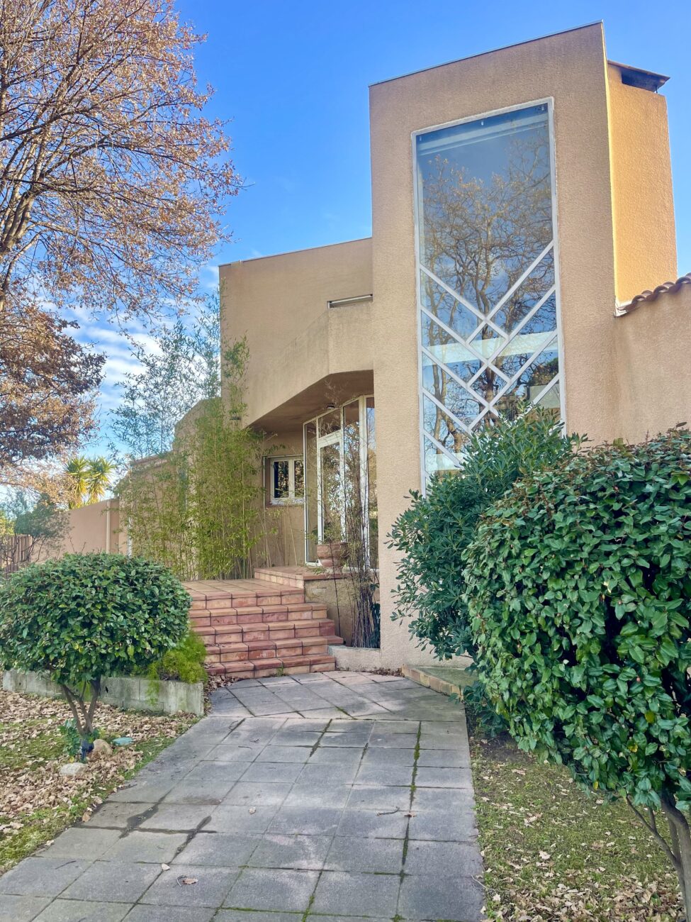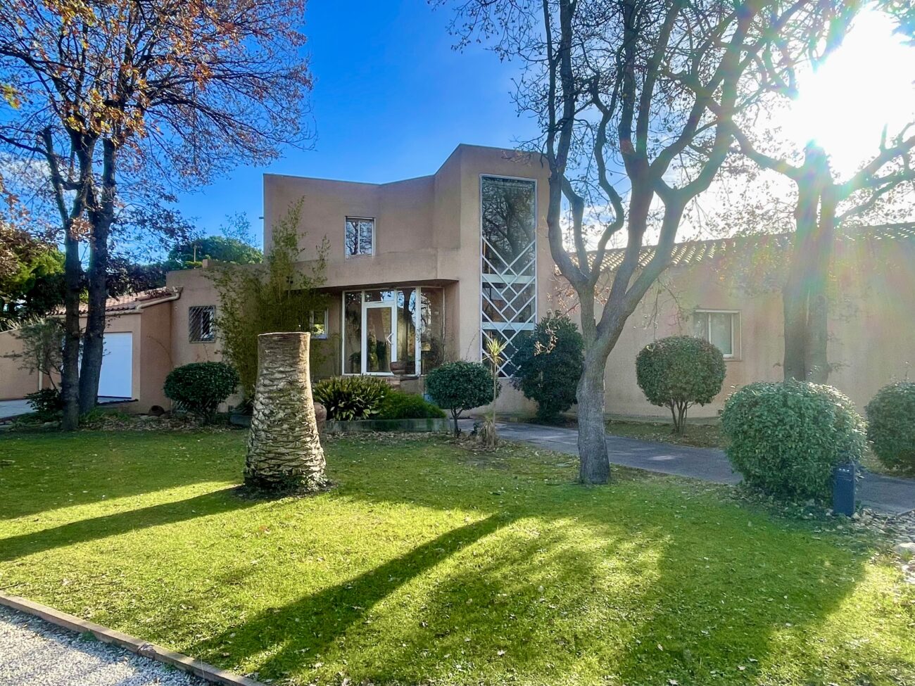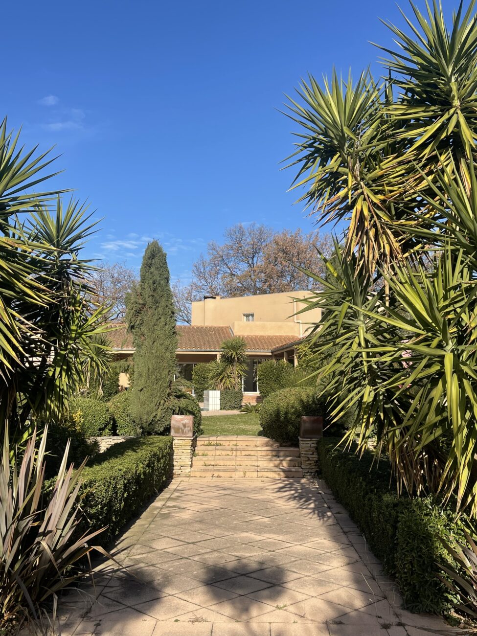 Située dans un très bon secteur de Perpignan, magnifique maison d'architecte aux volumes exceptionnels, 345 m2 habitables sur 5000 m2 de parc arboré.