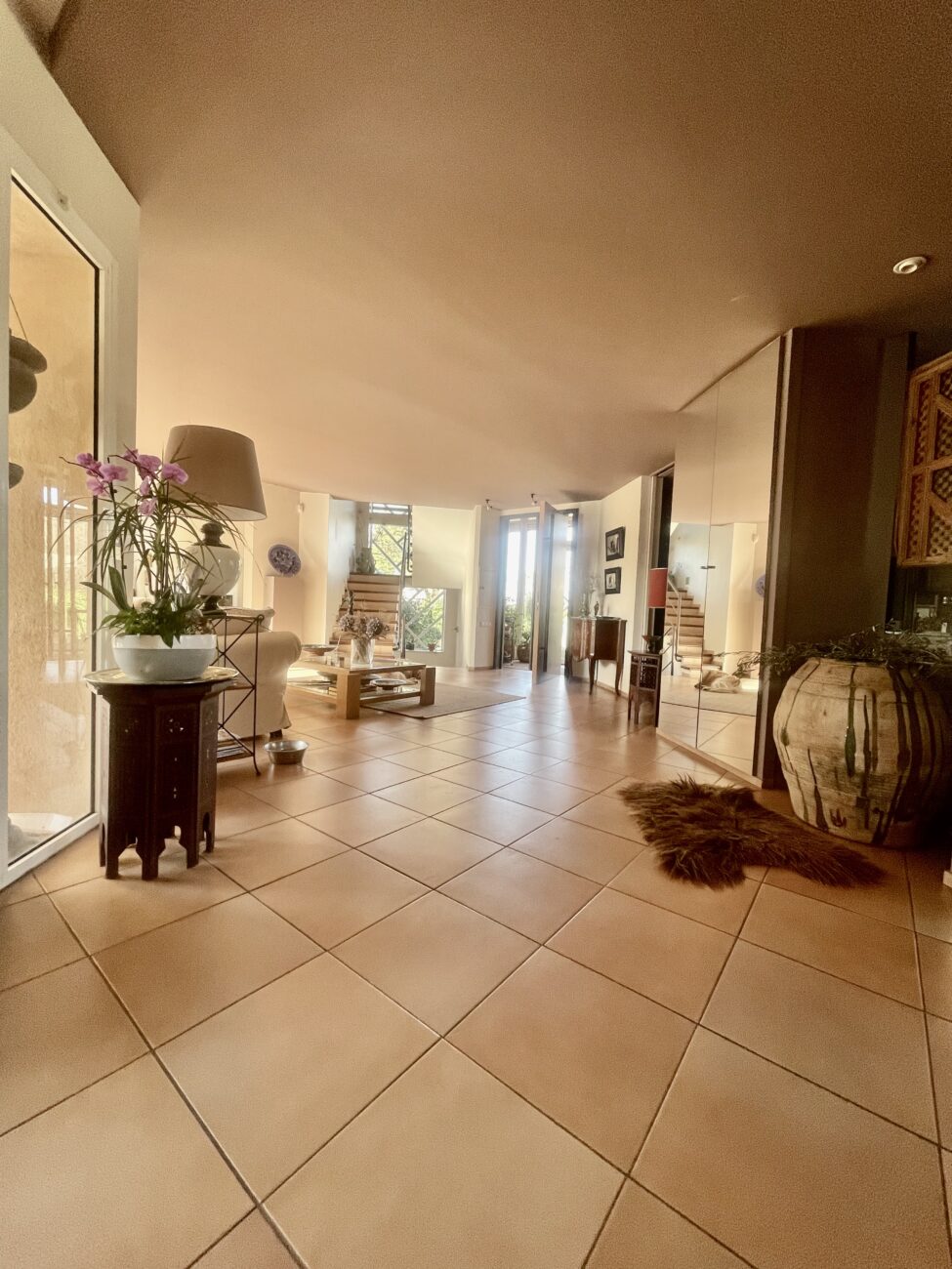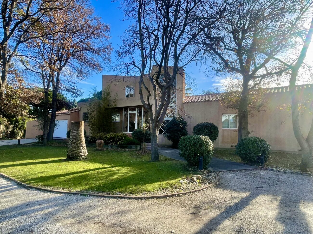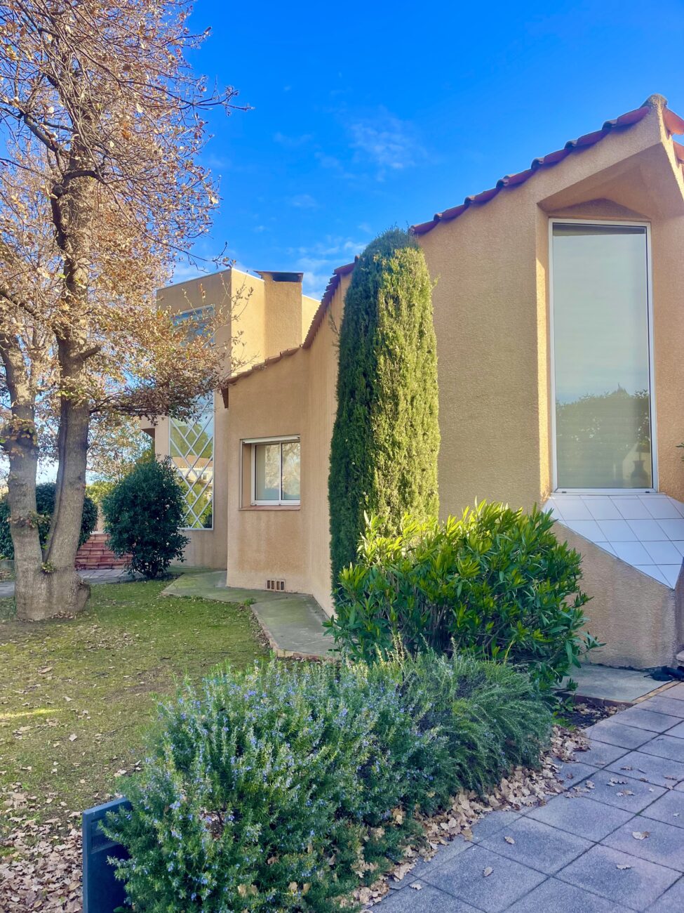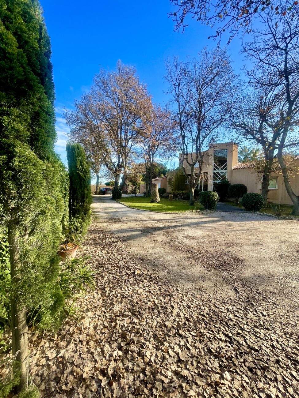 Située dans un très bon secteur de Perpignan, magnifique maison d'architecte aux volumes exceptionnels, 345 m2 habitables sur 5000 m2 de parc arboré.
